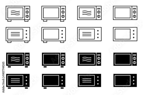 Microwave oven Icon Symbol Collection Isolated on White Background.