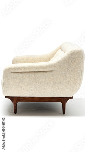 Mid Century Modern Sofa Beige Fabric Wooden Legs