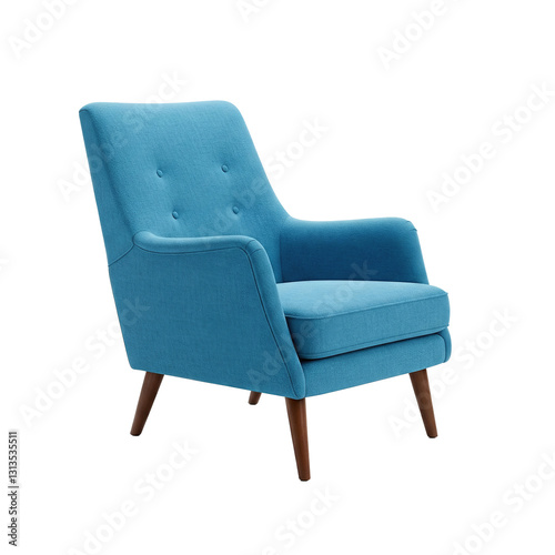 Mid-Century Modern Blue Armchair with Wooden Legs