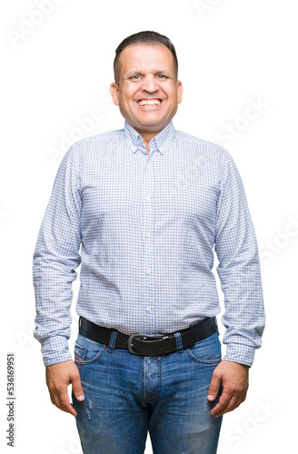 Middle age arab business man over isolated background with a happy and cool smile on face. Lucky person.