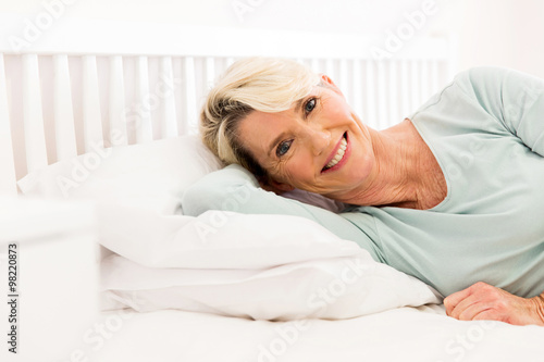 middle aged woman lying on bed