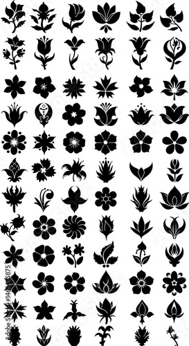 floral, flower, botanical, black, white, silhouette, illustration, design, element, graphic, vector, art, simple, minimalist, line art, pattern, motif, decoration, ornament, vintage, style, blossom, bloom