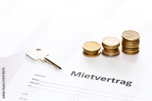 Mietvertrag mit Geld und Schlüssel