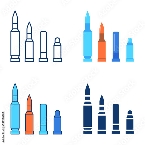 Military ammunition icon set in flat and line style