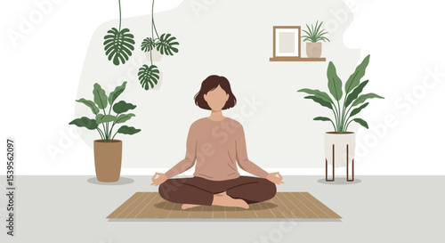 meditation, yoga, woman, houseplant, serenity, mental, mind, graphic, visual, calmness, calmness, soul, spiritual, well-being, zen, aesthetic, practice, stress, anxiety, harmony, peace, position, concentration, minimal, wellness, peaceful, balance, artwork, relaxation, sharpened, inner, room, floor, graphic, plant, lotus, relief, calm, image, mindfulness, simple, interior, pretty, sitting, health, optical, body, mat
