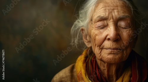 Mindfulness Meditation: Serene Elderly Woman Finding Inner Peace and Mental Wellbeing through Calm Reflection and Spiritual Contemplation