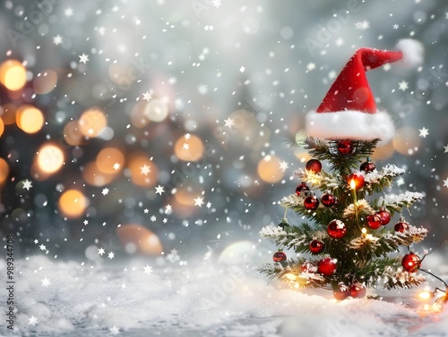 christmas, tree, santa, hat, snow, grey, background, star, bokeh, light, new, year, photo, holiday, winter, festive, decoration, celebration, season, greeting, card, design, concept, merry, christmas tree, christmas background, winter landscape, holiday season, new year's eve, christmas lights, christmas ornament, snowflake, winter scene, christmas card