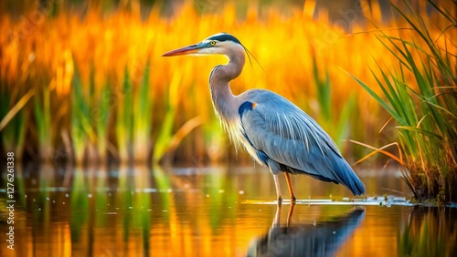 Miniature Great Blue Heron in Wetland Habitat - Tilt-Shift Photography