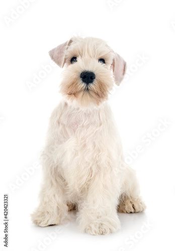 dog, puppy, schnauzer, miniature, animal, pet, terrier, white, young, purebred, studio, white background, isolated