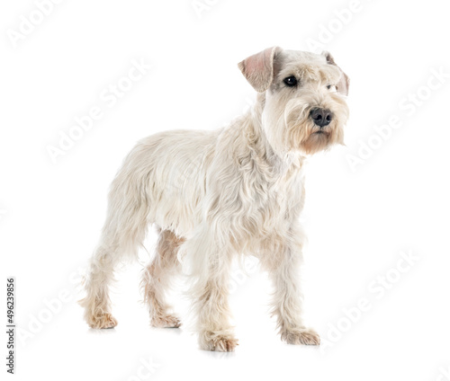 dog, puppy, white, schnauzer, miniature, animal, pet, terrier, young, purebred, studio, white background, isolated