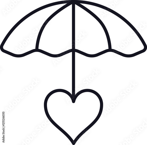 Minimal and clean line art vector icon of an umbrella protecting a heart, representing love insurance, healthcare, and protection of loved ones