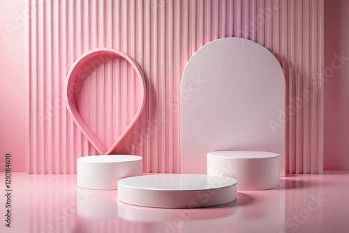 Minimal background, mockup with podium for product display, abstract white geometry background, minimalist pink background for valentine's day