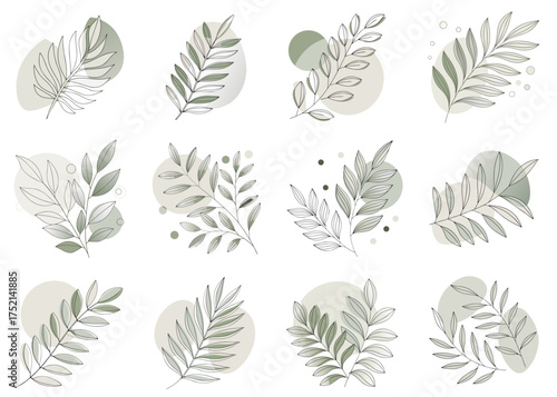 botanical, leaf, leaf, foliage, nature, plant, greenery, floral, natural, organic, minimalist, modern, vector, illustration, design, element, set, collection, isolated, background, earthy, tone, beige, green, pastel, elegant, soft, neutral, aesthetic, tropical, tree branch, eco, decoration, flat, graphic, decor, scandinavian, simple