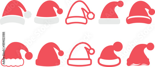 Minimal Christmas Santa hat icon set ideal for festive branding and decoration.