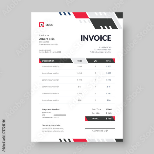 Minimal Corporate Business Invoice design template, Business Stationery Design
