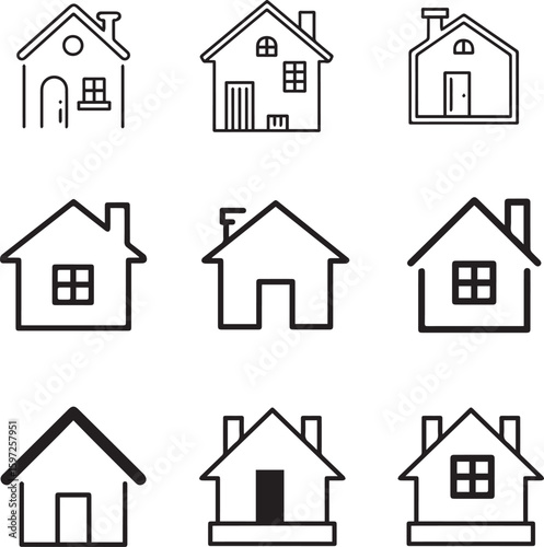 Minimal Home Icon Set House Symbols for App UI on Transparent Background