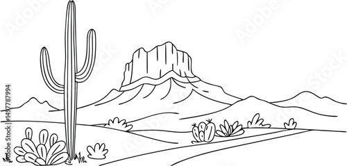 Minimal Tucson Skyline Outline with Mountain and Desert