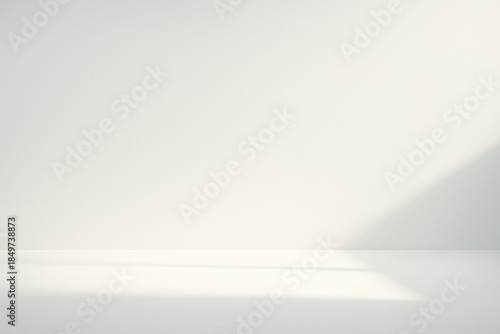 Minimal White Wall with Soft Diagonal Sunlight and Floor Shadow
