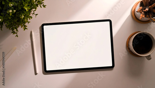 workspace, minimal, modern, tablet, desk, white, clean, neutral, natural, light, soft, design, product, empty, tech, digital, screen, hot drink, plant, simple, elegant, interior, bright, fresh, aesthetic, contemporary, neat, background, smart, device, scene, quiet, concept, trendy, work, office, business, creative, composition, lifestyle, professional, organised, clarity, blank, mock, sunlight