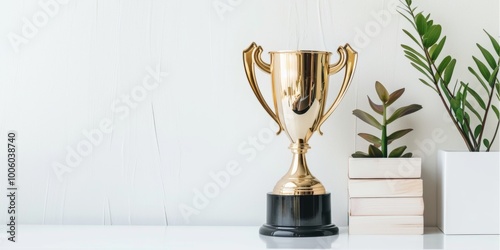 Minimalism in success: clean desk with one trophy.