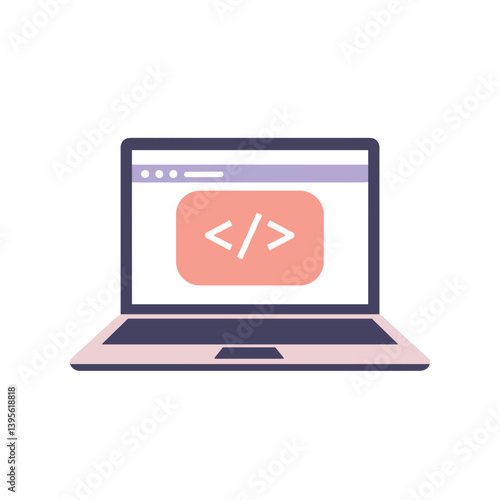 Minimalist and flat vector design of an open laptop displaying code in soft pastel colors