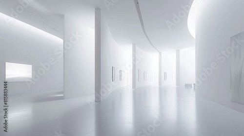 Minimalist art gallery with expansive white walls and a light, almost ethereal quality.