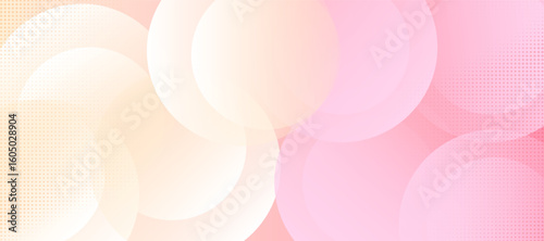 Minimalist banner background. halftone dots decoration, pastel colorful, pink and yellow gradations. Circle effect style geometric, abstract background