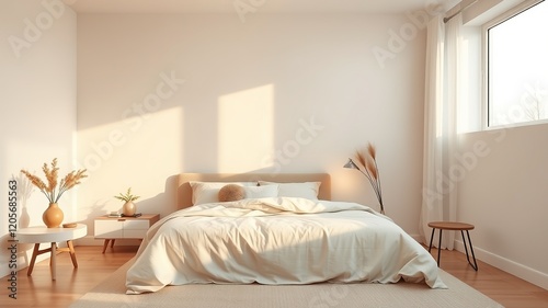Minimalist Bedroom, Evening Light, Tranquil Neutral Tones