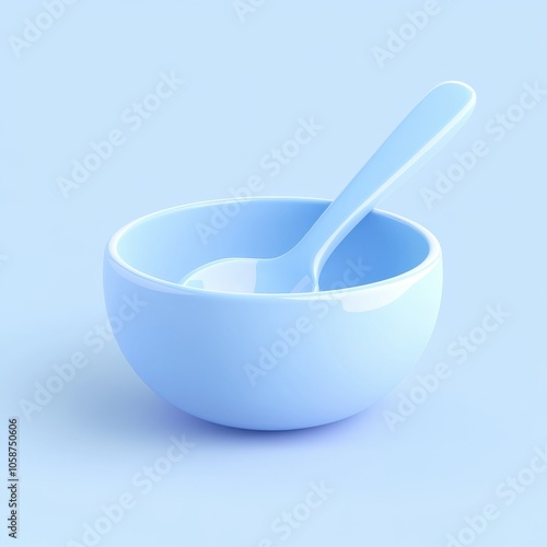bowl, spoon, tableware, crockery, crockery, cutlery, kitchen, dining, utensil, food, meal, eating, minimalism, simplicity, clean, modern, design, blue, colours, pastel, tidy, organised, arrangement, still, life, product, studio, photo, shadow, ceramic, plastic, material, object, item, interior, household, domestic, simple, elegant, refined