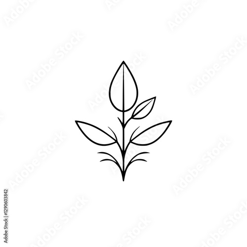 vector, plant, leaf, leaf, botany, stem, germinating, black, white, minimal, simple, design, outline, linear, line, minimalist, icon, graphic, illustration, nature