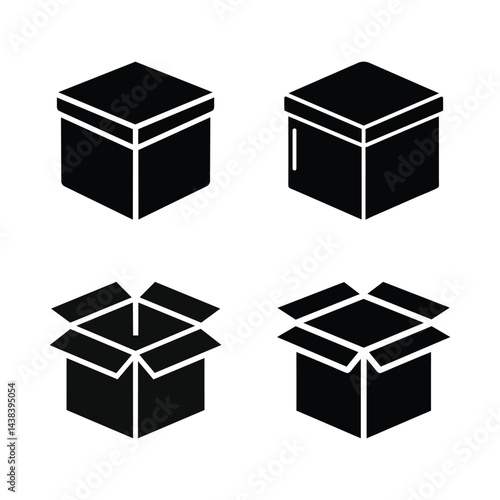 box, package, shipping, delivery, open, closed, cargo, container, cube, storage, gift, moving, freight, postal, courier, pack, enclosed, transportation, icon, vector, graphic, symbol, warehouse, cardboard, load, shipment, receive, supply, export, import, branding, e-business, store, product, business, minimal, flat, modern, stylish, silhouette, design, black