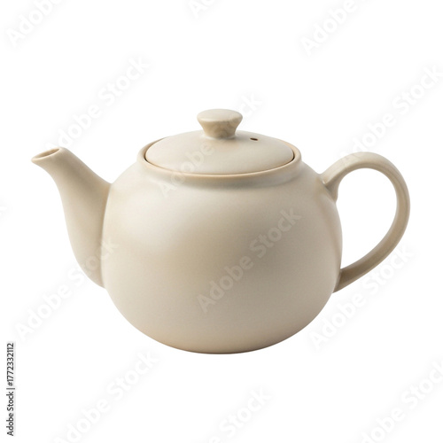 Minimalist Ceramic Teapot with Lid Isolated on Transparent Background