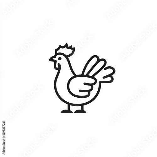 Minimalist Chicken Icon: Black Outline Illustration of Poultry on a White Background