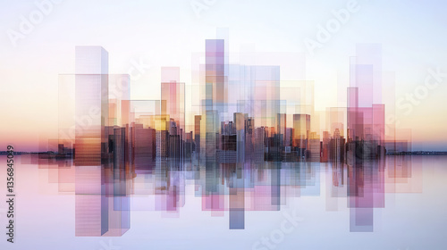 city landscape, minimalist, abstract, sunset, reflections, skyline, urban, architecture, colourful, modern, geometric, building, horizon, tranquil, serene, artistic, design, contemporary, light, pastel, structure, silhouette, evening, peaceful, city, landscape, visual, creative, vibrant, layered, soft, atmospheric, futuristic, panoramic, expression, digital, illusion, smooth, calm, beauty, aesthetic, light, dusk, view, reflective, harmony, nature, art, photo