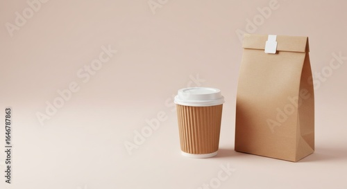 hot drink, paper bag, cup, take-away, beige, background, minimal, minimalism, brown, cardboard, disposable, cardboard box, blank, design, presentation, space, modern, simplicity, neutral, template, craft, cafes, fast food, delivery, lunch, isolated, studio shot, no people, beverage, drink, breakfast, break, single object, still life, clean, branding, advertising, cafes, food, eatery, retail, business, environmentally friendly
