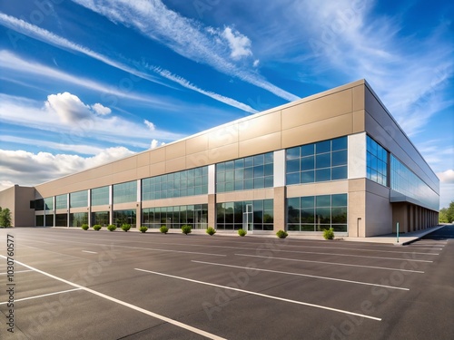 roomy, urban setting, simplicity, clear sky, minimalism, real estate, parking, business center, landscape, open space, business building, aesthetic, business district, architectural style