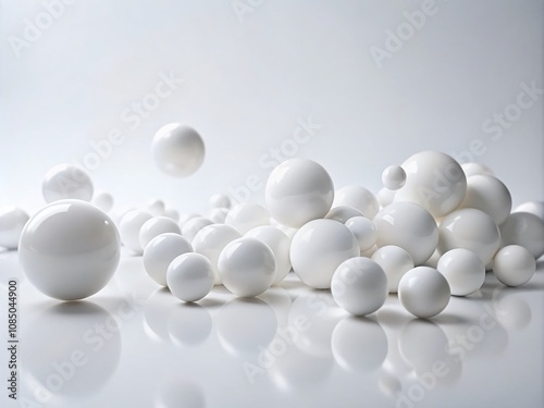 Minimalist Conceptual Photography Featuring White Spheres on a Pure White Background for Artistic and Abstract Visuals