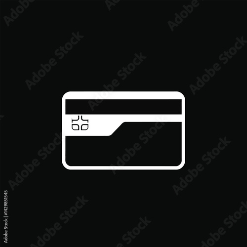 Minimalist Credit Card Icon in Black and White with Geometric Chip and Stripe Design