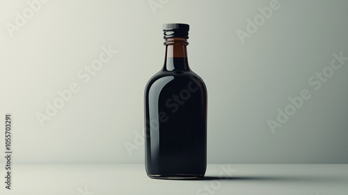 Minimalist Dark Glass Bottle of Herbal Syrup on Light Background