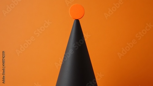 Minimalist design featuring black cone and orange dot on solid orange background concept for balance and visual appeal