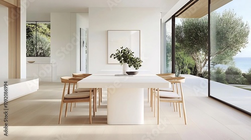 minimalist, dining, room, neutral, tone, white, table, wooden, chair, window, natural, light, interior, design, modern, contemporary, architecture, decor, furniture, home, living, space, bright, airy, clean, simple, elegant, scandinavian, lifestyle, cosy