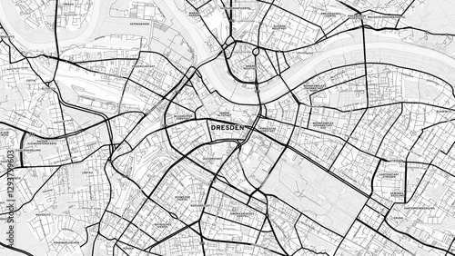 Minimalist Dresden Street Map with Labels and Neighborhoods