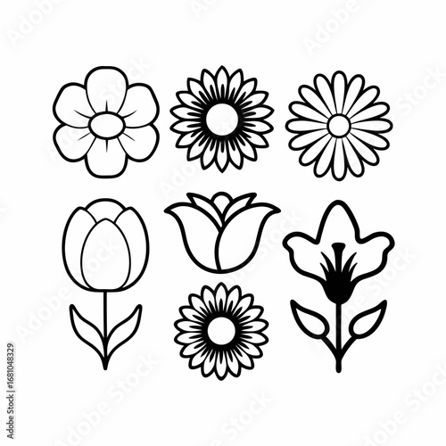 Minimalist Floral Icons Rose Lotus Tulip Vector