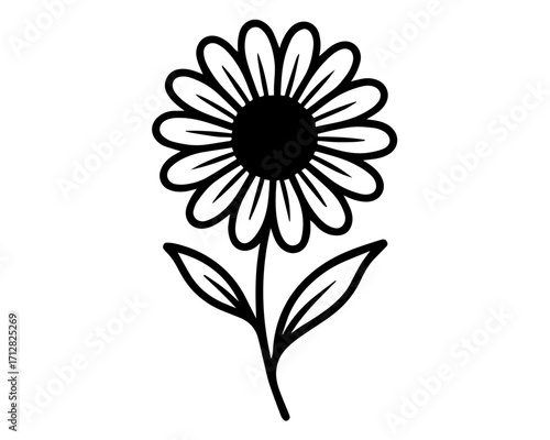 Minimalist Flower Icon – Black and White Botanical Line Drawing with Symmetrical Leaves