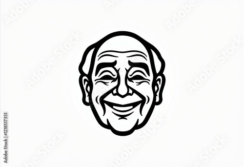 Minimalist Geometric Logo, Stylized Old Man Face, Simple Outlines, Smiling Expression, Conceptual Icon Design, Geometric Illustration, Outline Art Style, Minimal Design Concept, Logo, Art.