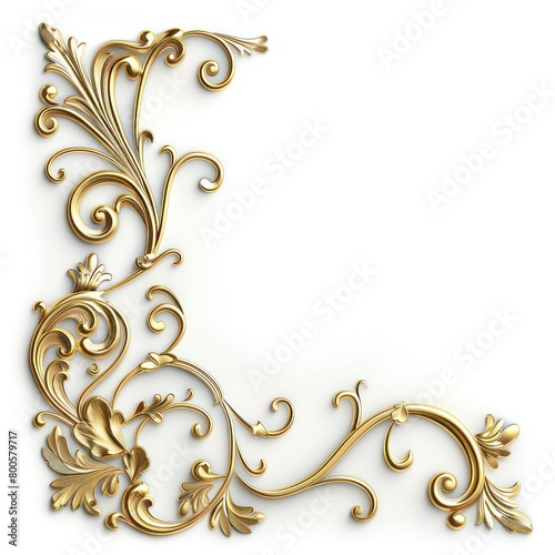 minimalist gold metallic corner decorated with swirls and flourishes on a white background