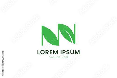 Minimalist green leaf logo design featuring nn symbol for eco-friendly brands