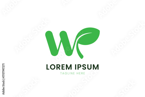 Minimalist green wp logo with leaf element and placeholder text