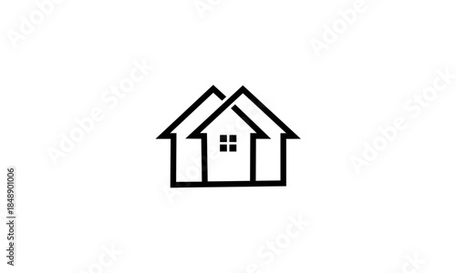 Minimalist House Logo Design with Intersecting Rooflines and Window Detail.