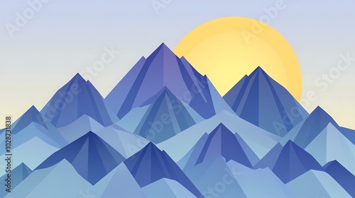 mountain, peak, range, sunset, sunrise, horizon, sun, sky, blue, yellow, minimalist, illustration, nature, landscape, graphic, design, art, abstract, vector, digital, background, simple, peaceful, serene, calm, tranquil, beauty, scenery, wilderness, environment, mountain chain, mountain peak, sunbeam, ray, light, shadow, dawn, dusk, morning, evening, day, night, gradient, colours, shape, geometric, pattern, texture